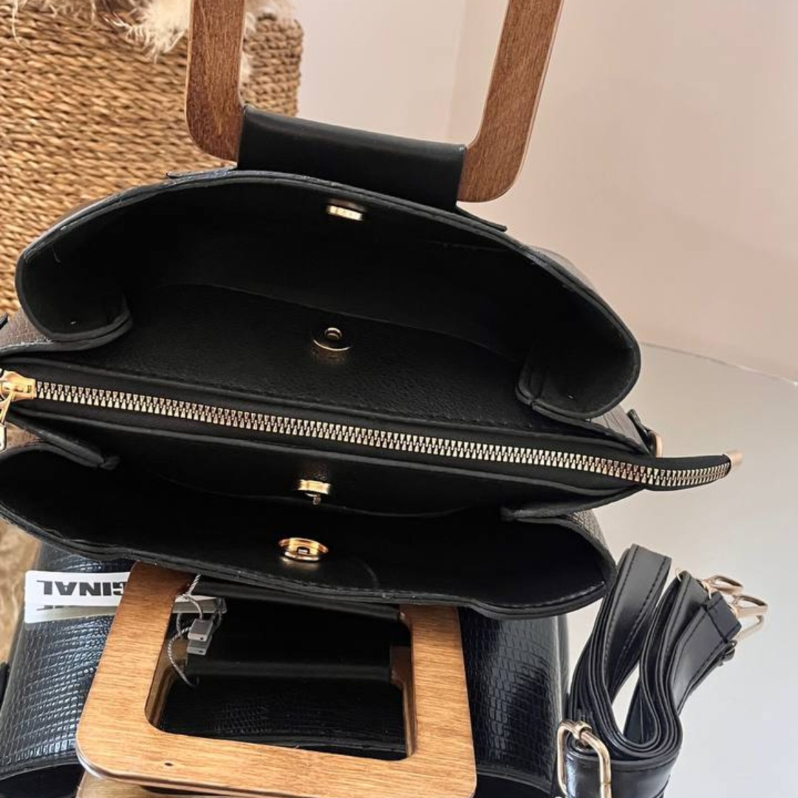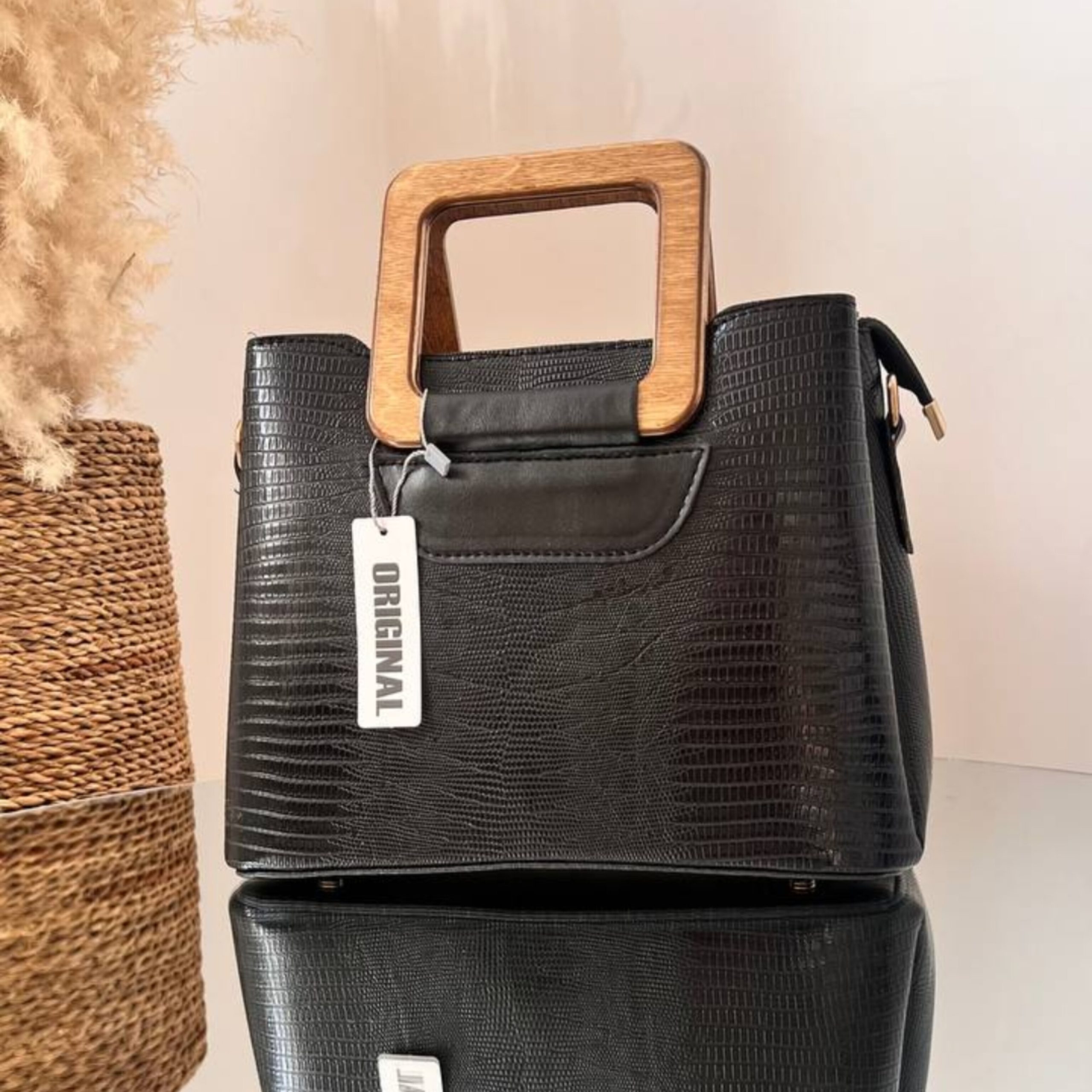 کیف زنانه و دخترانه دسته چوبی مربعی E1