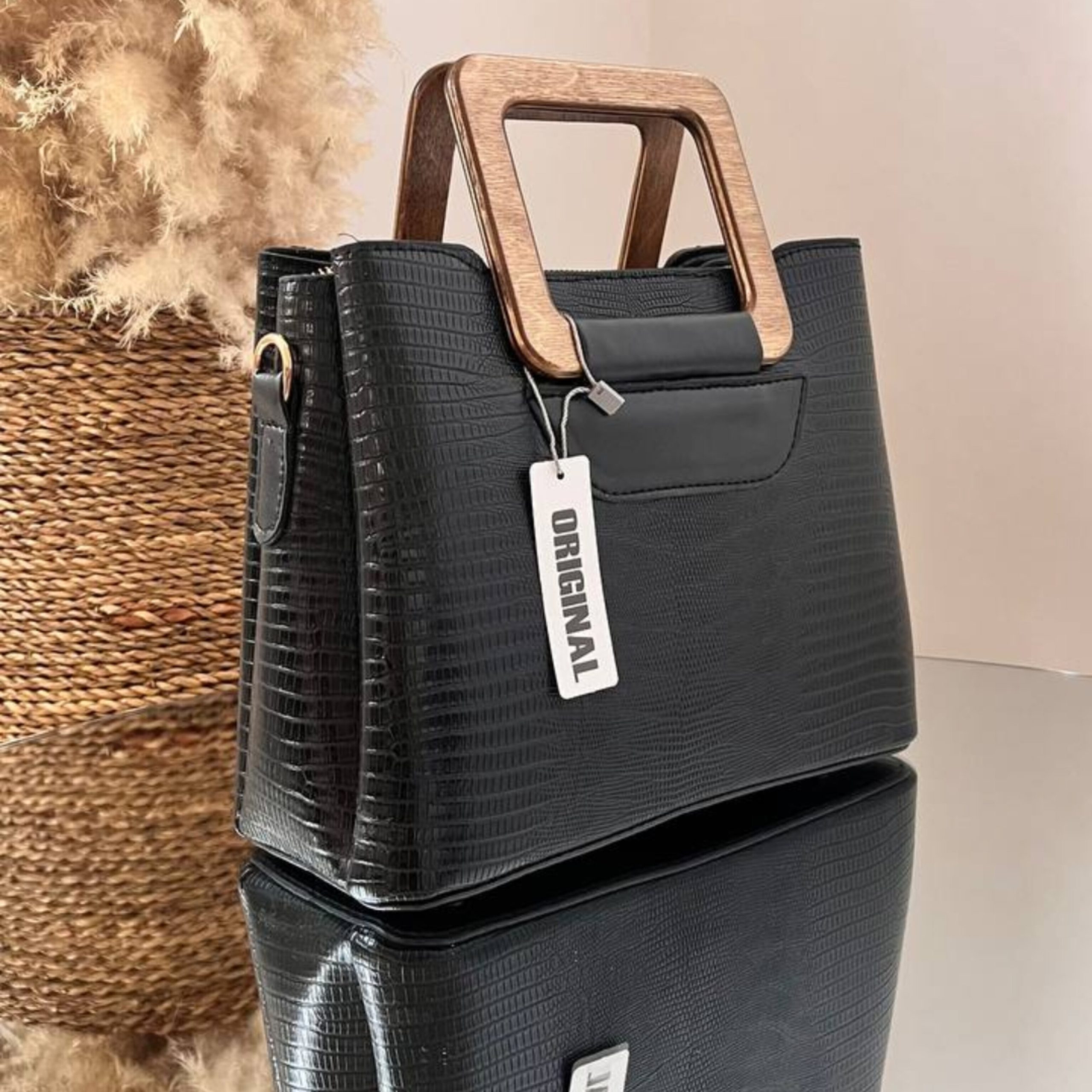 نام محصول: کیف زنانه و دخترانه دسته چوبی مربعی طرح سنگی E2